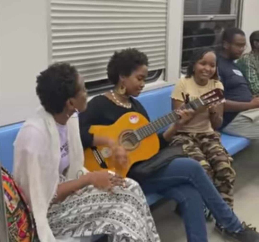 وبحسب رصد ومتابعة محرر موقع النيلين فقد أظهر المقطع الفتيات السودانيات وهن يغنين رائعة الفنان المصري محمد محمد منير “نعناع الجنينة أثناء استغلالهن لخط المترو.