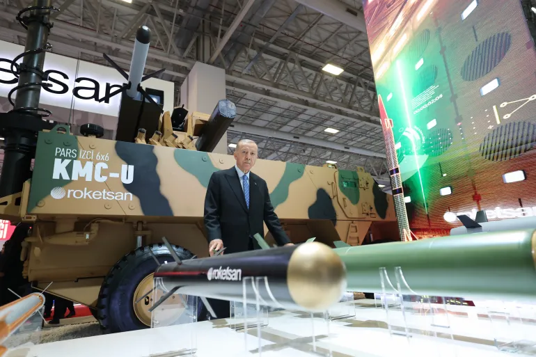 وأشار أردوغان إلى أن “المسافة التي قطعتها تركيا في مجال الصناعات الدفاعية خير شاهد على إنجازاتها”. وتابع “سنخرج أمام العالم بمنتجات جديدة ذات تكنولوجيا متقدمة توجه قطاع الصناعات الدفاعية وتفتح آفاقا جديدة في مجالها”.