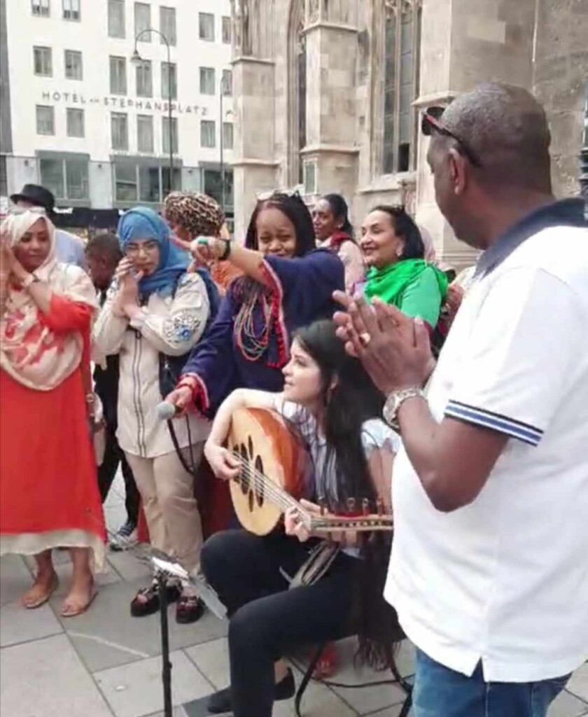 الفتاة السورية شروق أكرم كانت قد تدربت وحفظت الأغنية ورددتها أمام جمع غفير من أبناء الجالية السودانية بالعاصمة النمساوية فيينا خلال منتدى ثقافي.