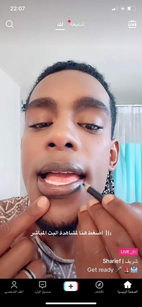ولم يكتفي نجم نجوم الغد وأغاني وأغاني السابق بذلك اللايف, بل عاد في بث جديد ظهر من خلاله وهو يضع مستحضرات تجميل وهذه المرة على شفايفه.