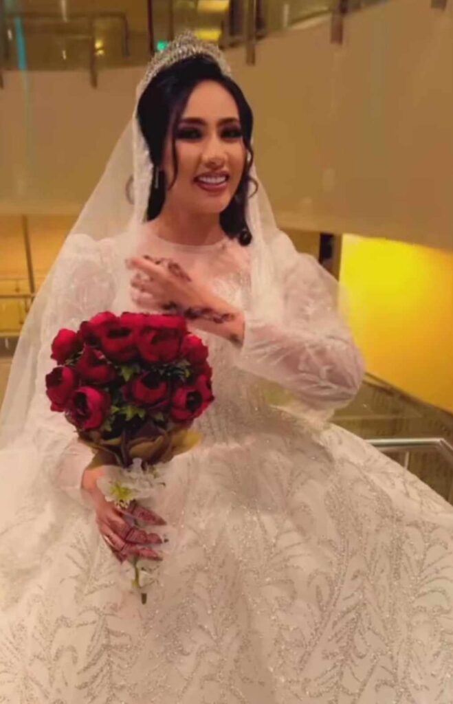 وبحسب رصد ومتابعة محرر موقع النيلين فقد أظهر المقطع المتداول المذيعة الملقبة بفاتنة الإعلام السوداني وهي عروس بفستان الزفاف.