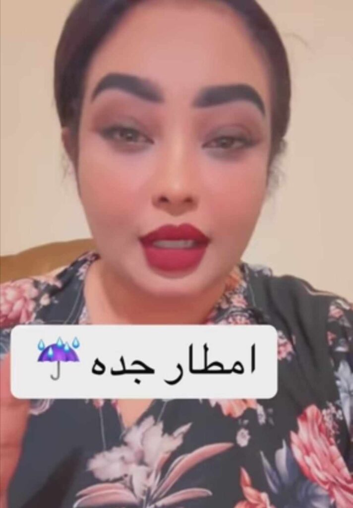 وقارنت الفتاة بين أجواء الخرطوم وجدة بعد هطول الأمطار, وذكرت أن في العاصمة السودانية (بنعرف المطر عاوزة تصب قبل أسبوع من صوت الضفادع بس).