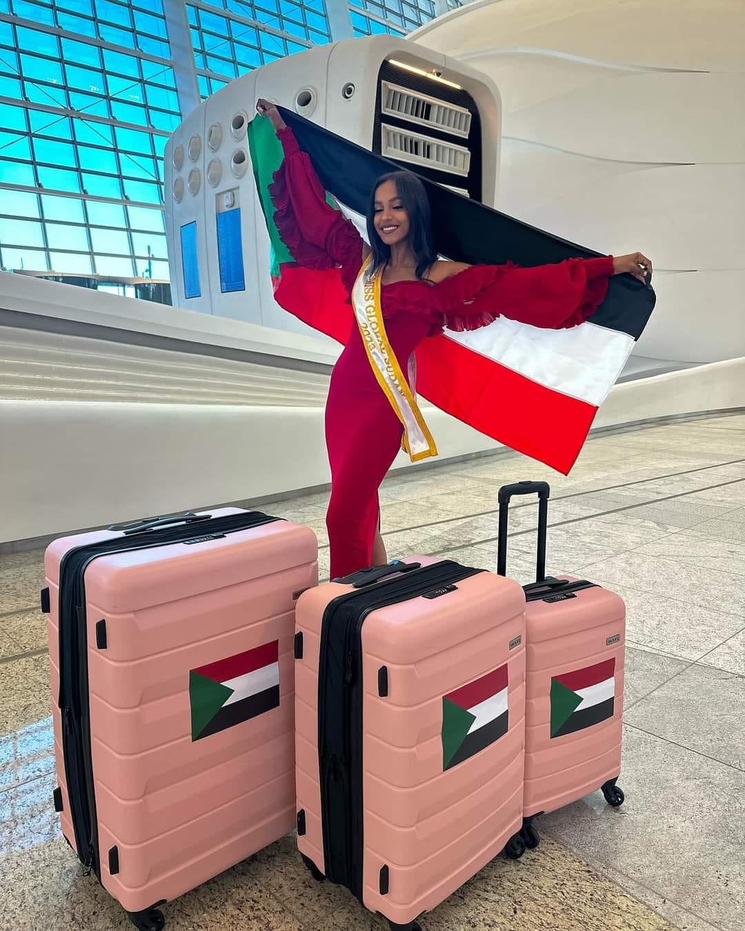 وبحسب رصد ومتابعة محرر موقع النيلين فقد ظهرت تسابيح, وهي متوشحة بعلم السودان وذلك قبل لحظات من مغادرتها للمشاركة في المسابقة.