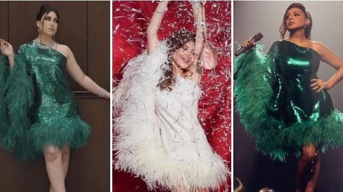 مين أحلى ؟ شاهد 3 نجمات بنفس الفستان الريش فى رأس السنة