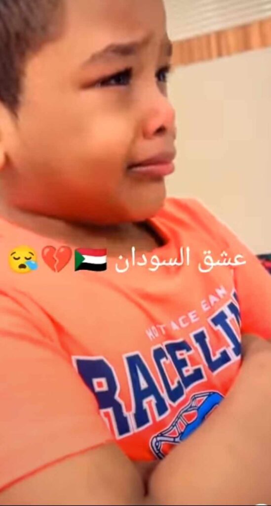 وقال الطفل وهو يبكي: (داير أرجع السودان) لتقوم والدته بتطيب خاطره , وحقق المقطع تفاعلات كبيرة وتعاطف المئات من المعلقين مع الطفل.