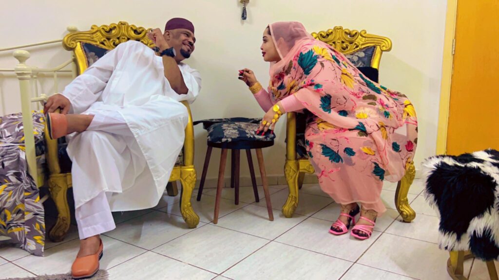 وبحسب رصد ومتابعة محرر موقع النيلين فقد ظهرت الحسناء التي تلقب نفسها باسم “منوية” وهي جالسة بجانب زوجها وهما يتبادلات الحديث.