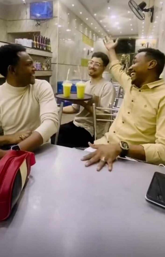 وردد الشابين السودانيين, أثناء جلوسهما في انتظار طلبهما, الأغنية المصرية الشهيرة “سلامات” بصوت جميل وطروب.