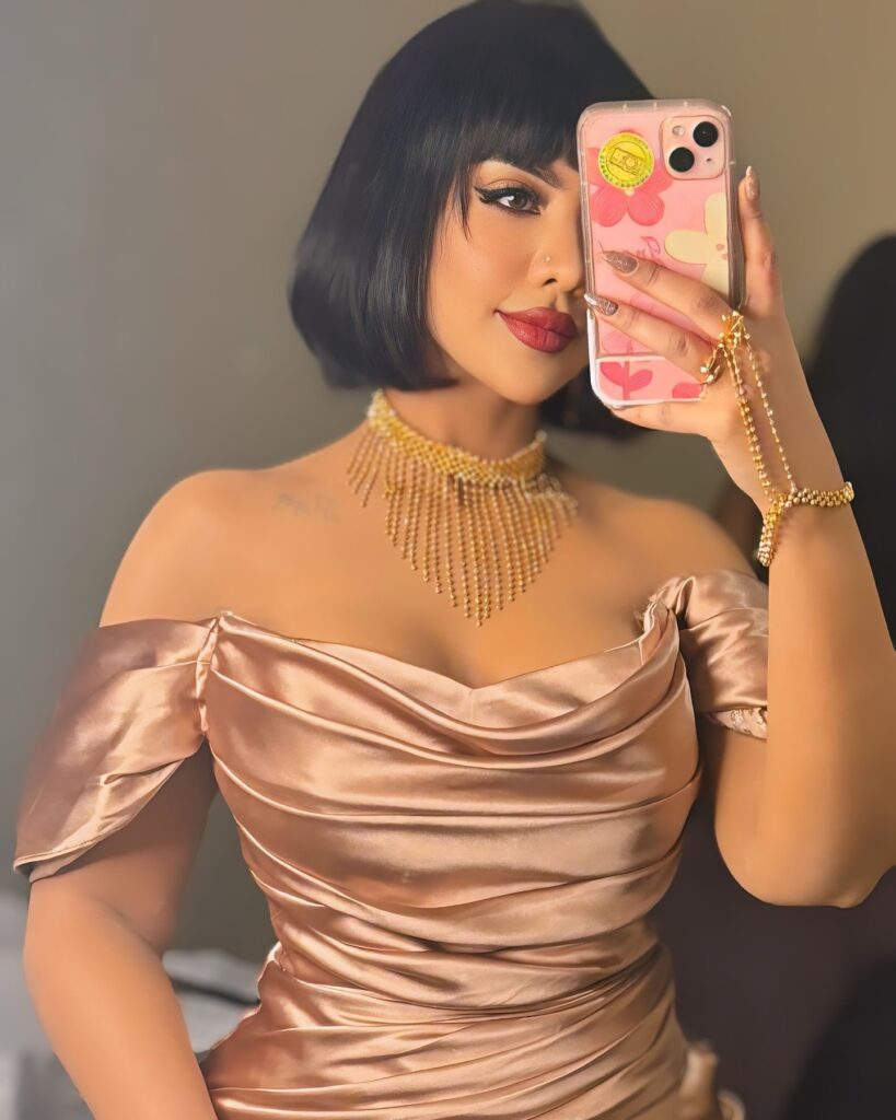 وكتبت الحسناء “لوشي” على الإطلالة التي قلدت فيها ملكة جمال مصر “كليوباترا”, (اللوك كامل مستوحى من آخر ملوك الأسرة المقدونية، اللي حكمت مصر كليوباترا).
