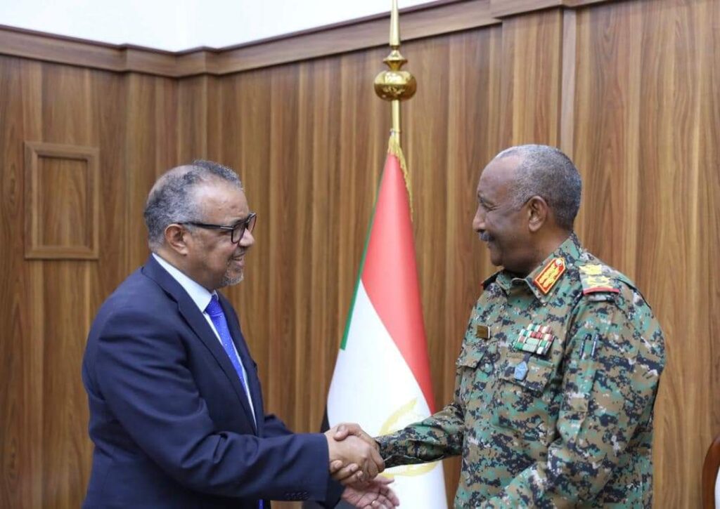 وقال وزير الصحة في تصريح صحفي أن زيارة مدير عام منظمة الصحة العالمية للسودان كانت حافلة بالكثير من البرامج حيث زار عدد من المؤسسات الصحية ومراكز الإيواء ومفوضية العون الإنساني وأجرى مقابلات مع عدد من المسؤولين بالدولة تركزت في مجملها حول إلتزام منظمة الصحة العالمية بمواصلة عملها في دعم السودان وإسناد المؤسسات الصحية وضرورة فتح المعابر الحدودية مع دول الجوار لتسهيل وصول المساعدات الإنسانية للمتأثرين بالحرب . مبيناً أن مدير المنظمة وعد بزيادة الدعم المخصص للسودان.
