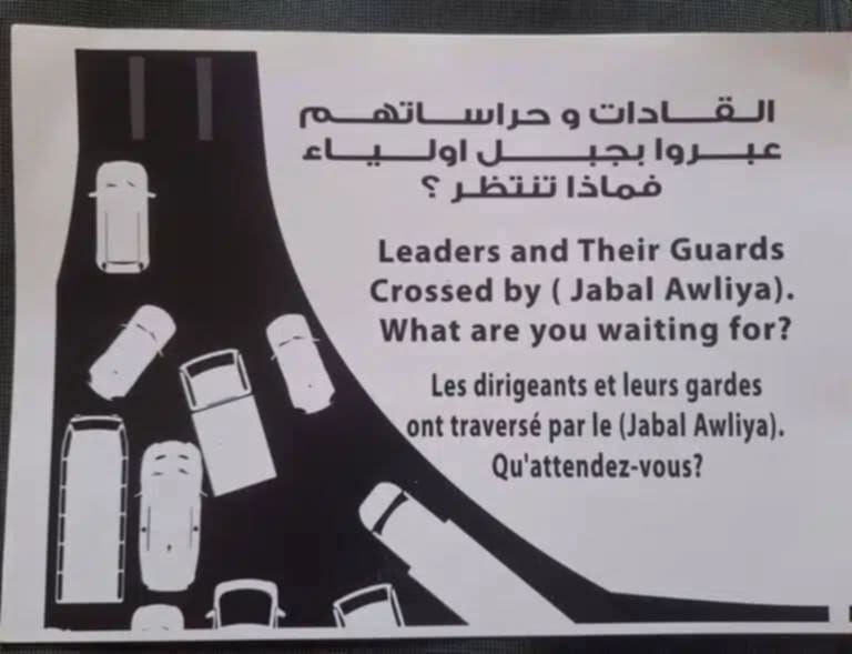 وكتب الجيش على الورقة” القيادات وحراساتهم عبروا بجبل أولياء فماذا تنتظر؟”.