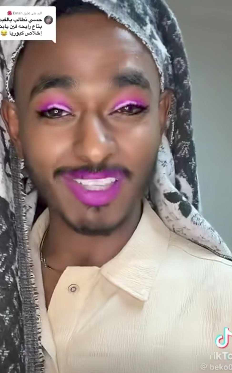 وبحسب ما شاهد محرر موقع النيلين, فقد قام الشاب بتقليد الممثلة الكبيرة هالة صدقي, والممثلة الشهيرة مي عمر, في أحد مشاهد المسلسل المصري الضجة (إش إش), والذي تم عرضه في شهر رمضان الماضي.