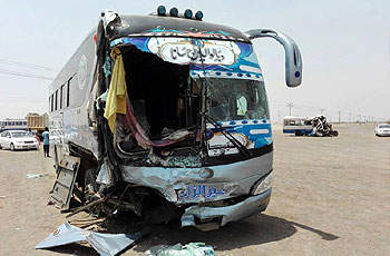 لقي 12 شخصا مصرعهم، في حادث سير بعد تصادم حافلة ركاب كانت تقلّهم مع شاحنة ثقيلة في الطريق الصحراوي الرابط بين أجدابيا وطبرق شرقي ليبيا.