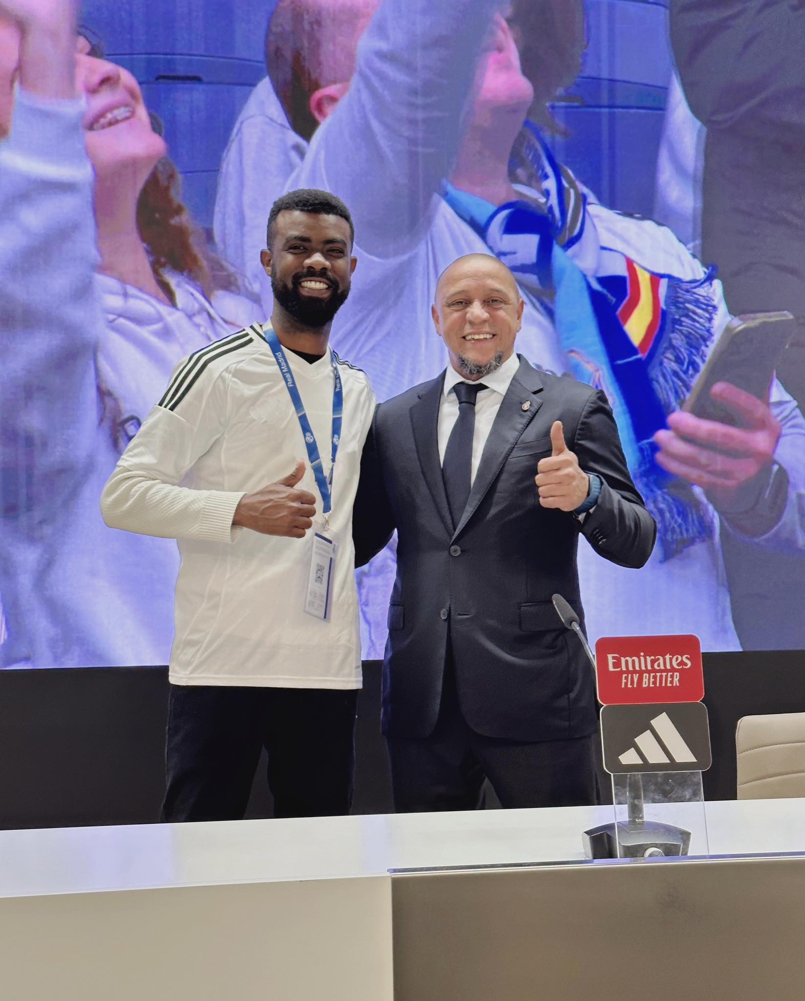 شاهد بالصور والفيديو.. بعد أن شاركه اللعب بلقطات إستعراضية في إسبانيا.. نجم كرة القدم السوداني عبد الله عماد يدهش اللاعب العالمي روبيرتو كارلوس بمهاراته العالية