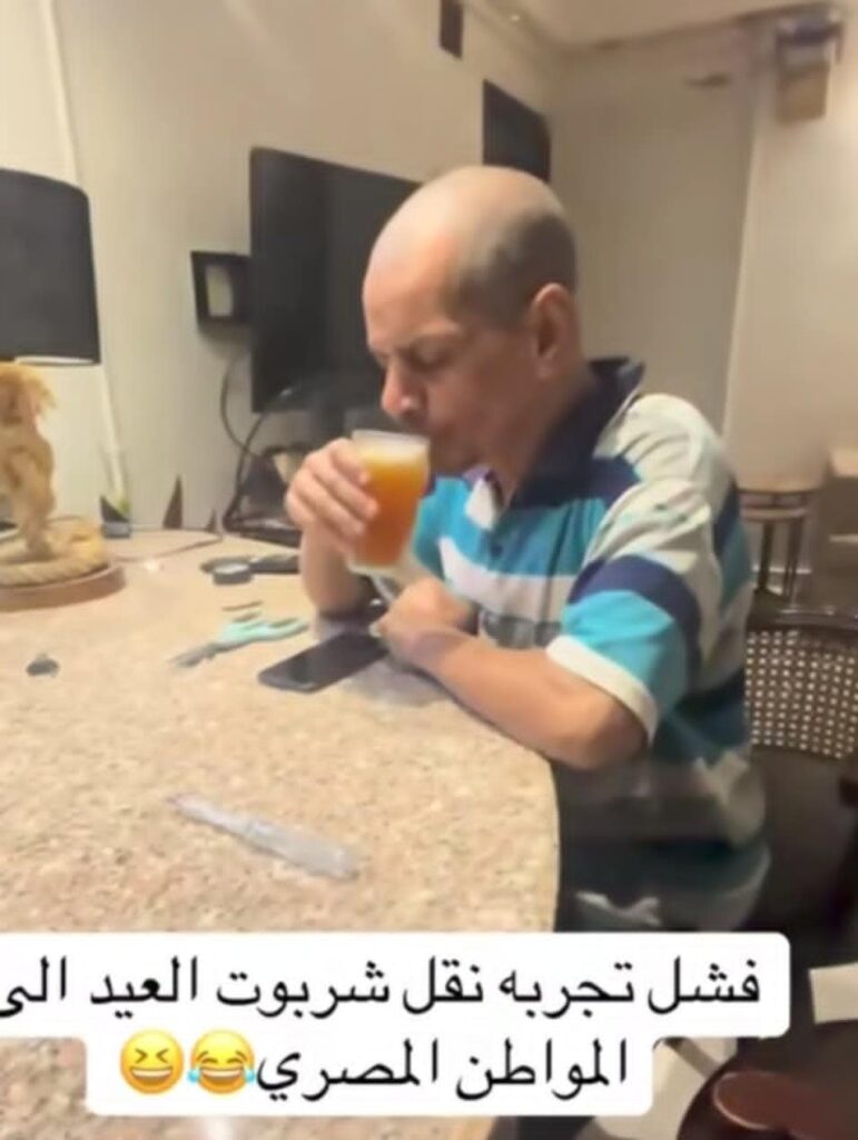 وبحسب رصد ومتابعة محرر موقع النيلين, فإن الناشط حاول إقناع مواطن مصري, بشرب المشروب السوداني, الشهير “الشربوت”.