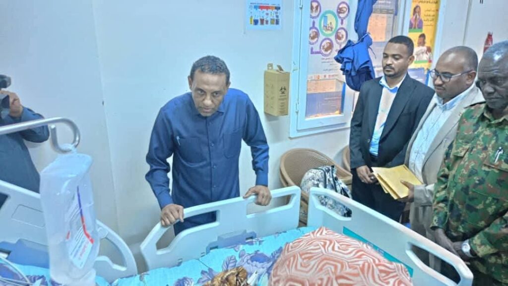كما شملت الزيارة مستشفى امدرمان التعليمي وتفقد أقسام الحوادث والعنابر وأطمأن على أحوال المرضى ووجه إدارة المستشفى بزيادة السعه السريريه لقسم الحوادث والعناية المكثفة.