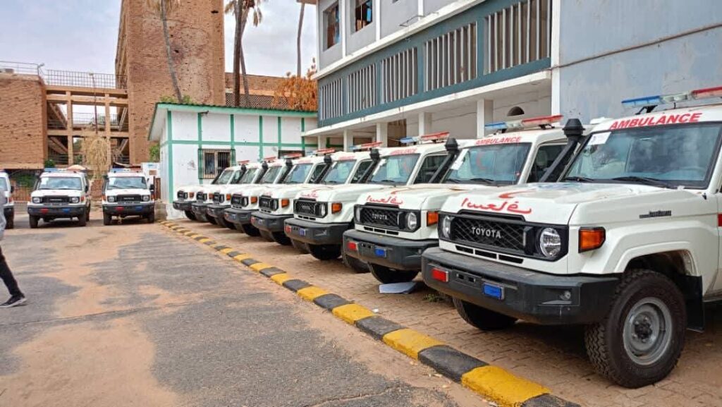 دشن دكتور هيثم محمد ابراهيم وكيل وزارة الصحة الاتحادية الوزير المكلف ووالي الخرطوم الأستاذ أحمد عثمان حمزة اليوم الدفعة الرابعة من عربات الاسعافا وعددها ٤٧ عربة إسعاف موزعة على ١٥ ولاية وإقليم مقدمة من الوكالة القومية للرعاية الطارئة والاسعاف بوزارة الصحة الاتحادية ووزارة المالية الاتحادية والمصرف العربي للتنمية الاقتصادية وشارك في التدشين ممثلو وزارت المالية والتخطيط الاقتصادي والداخلية وممثل مدراء عموم الصحة بالولايات ومدير عام الصحة ولاية الخرطوم دكتور فتح الرحمن محمد الأمين وأوضح دكتور هيثم محمد ابراهيم وكيل وزارة الصحة بأن الإسعاف المركزي يمثل برنامج حياة في تقديم الرعاية الطارئة بتوزيع الخدمات التي تديرها المنظومة الصحية الكلية باعتبار ان الإسعاف المركزي هو الرابط لهذه الخدمة وتقوم المنظومة بالاشراف الكامل ووفق رؤية متكاملة لكل السودان وقال دكتور هيثم بأن المشروع مصحوب بتدريب لخمسة الف شرطي على الاسعافات الأولية مشيرا للحوجة الكبيرة لهذه الخدمة من الرعاية عبر الإسعاف لان الموجود لايفي بعد أن تم نهب وحرق كل الاسطول الموجود أثناء الحرب وقال ماهو موجود يمثل ٢٠٪ من الحوجه الفعليه ودعا لأهمية تقوية ادارات الإسعاف بالولايات حتى يتم تقديم خدمه مميزه لان الإسعاف يمثل دورا كبيراً في حياة المرضى واسعافهم للمشافي.