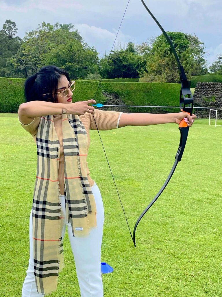 وبحسب رصد ومتابعة محرر موقع النيلين, فقد ظهرت نجمة قناة سكاي نيوز عربية, في اللقطة وهي تطلق “السهم” من “القوس” الذي تحمله.