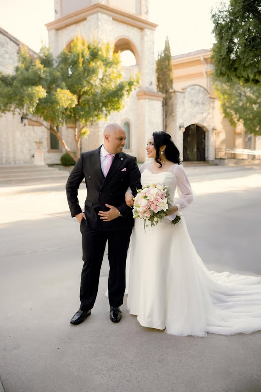 وظهر العروسين “كادي”, وزوجها “سعد” في لقطة من حفل زفافهما الذي أقيم بالولايات المتحدة الأمريكية وفقاً لما ذكر ناشرو الصورة والخبر على مواقع التواصل الاجتماعي.