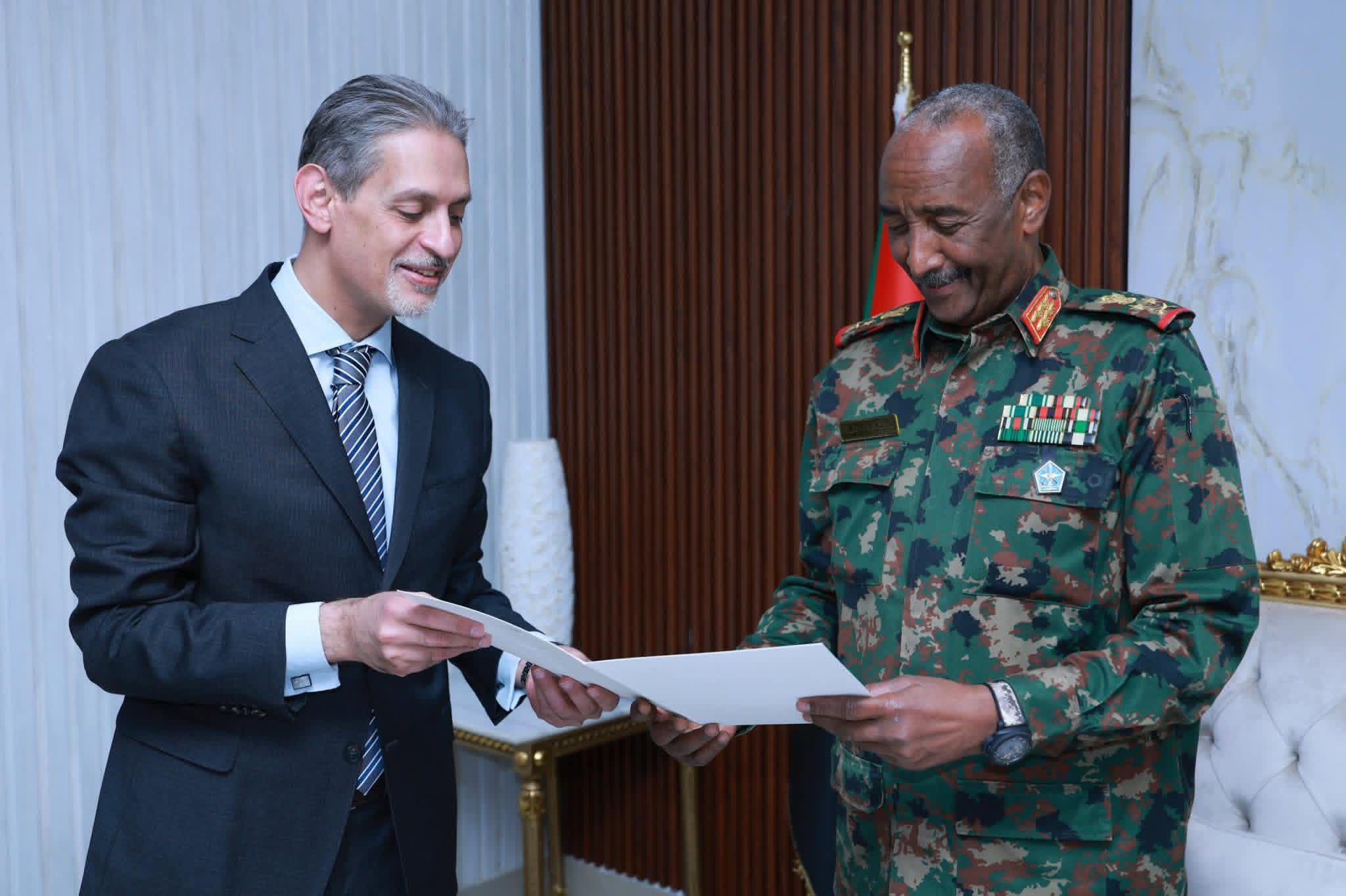 تسلم السيد رئيس مجلس السيادة القائد العام للقوات المسلحة الفريق أول الركن عبدالفتاح البرهان، اليوم رسالة خطية من رئيس جمهورية مصر العربية عبد الفتاح السيسي، تتعلق بمسار العلاقات الثنائية بين البلدين وسبل دعمها وتطويرها وتقويتها في كافة المجالات.