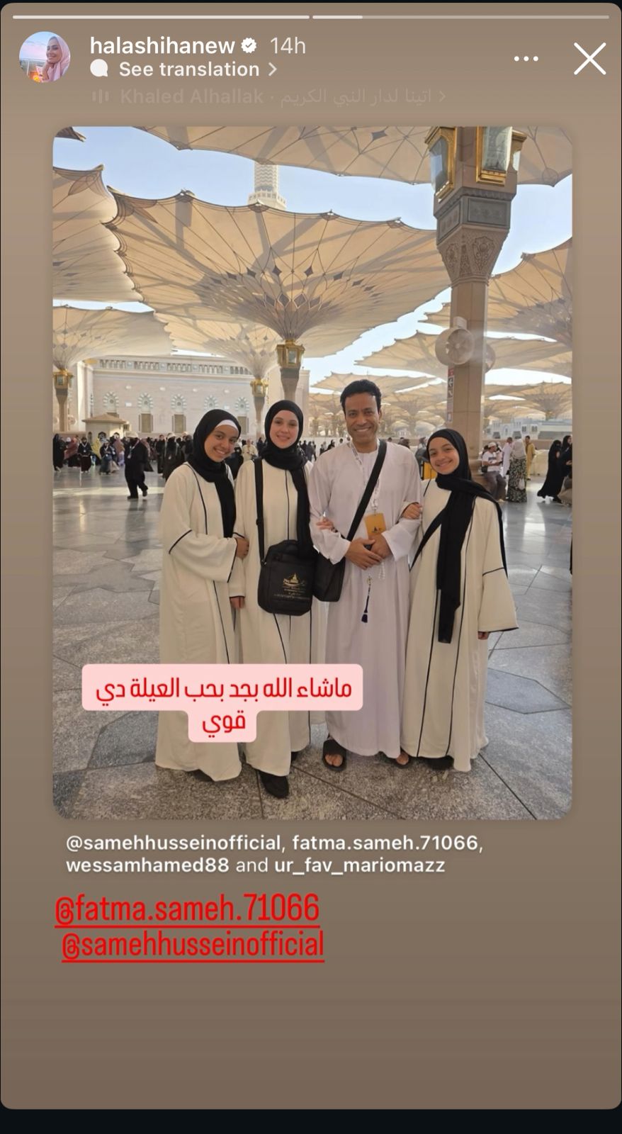 شاركت الفنانة حلا شيحة، صورة لأسرة الفنان سامح حسين من الحرم النبوي، ذلك عبر حسابها الشخصي على موقع التواصل الاجتماعي انستجرام.