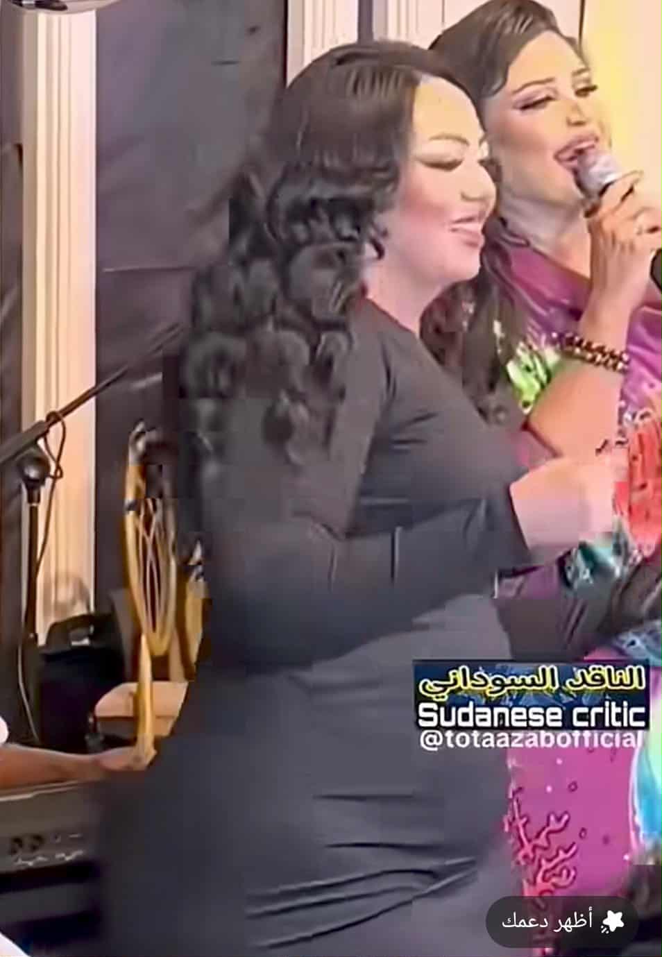 شاهد بالصورة والفيديو.. بأزياء ضيقة ومحذقة.. حسناء سودانية تقتحم المسرح وتدخل في وصلة رقص مثيرة مع الفنانة توتة عذاب والجمهور: (فك عرش واضح واستعراض للجسم)
