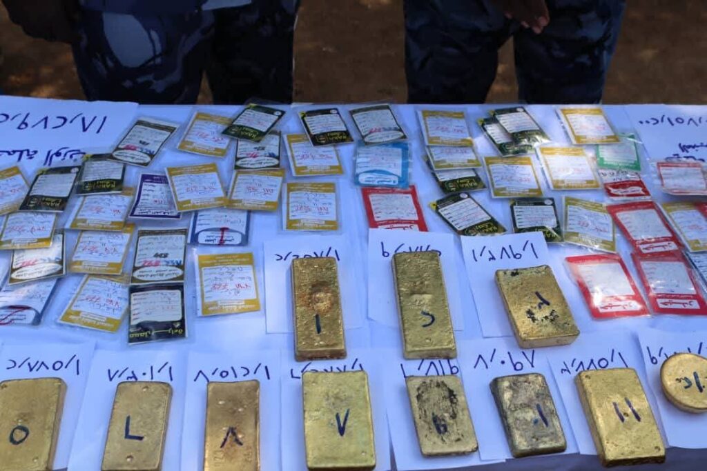 وبحوزتهما (15) سبيكة ذهب و(57) كرت شَشْنَة، بإجمالي يبلغ (18) كيلو و(279 ) جرامًا وحبتين ذهب دون أي مستندات رسمية وتم إتخاذ إجراءات بلاغ في مواجهتهما بالرقم (496) تحت المواد (32) من قانون تنمية الثروة المعدنية و(21) أمر طوارئ بقسم بلاغات التعدين بولاية نهر النيل.