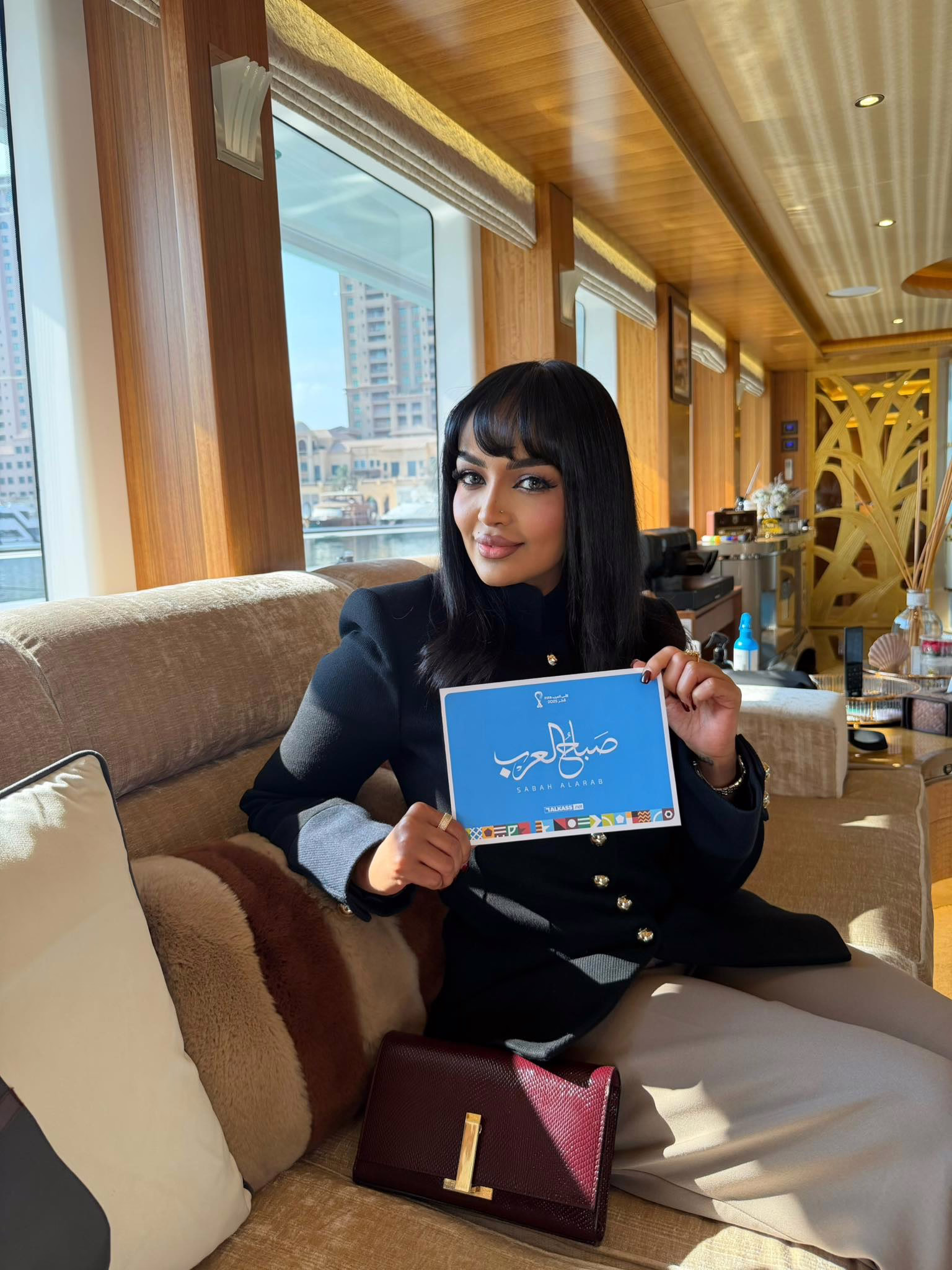 وكتبت المشجعة الحسناء: (حكون ضيفة بعد قليل على برنامج صباح العرب على قناة الكأس مباشر بعد قليل الساعه 10:30 Am).