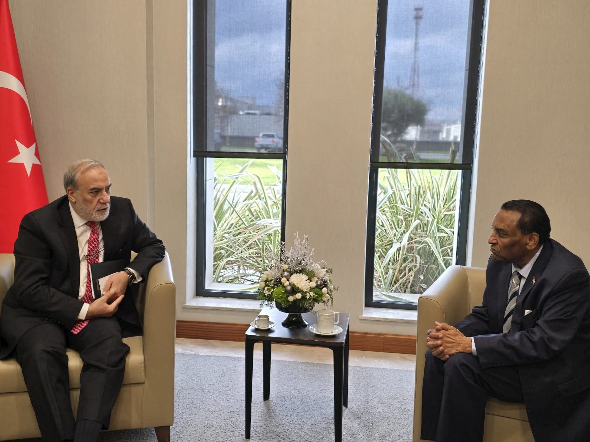 كامل إدريس يلتقي بمطار إسطنبول نائب وزير الخارجية التركي