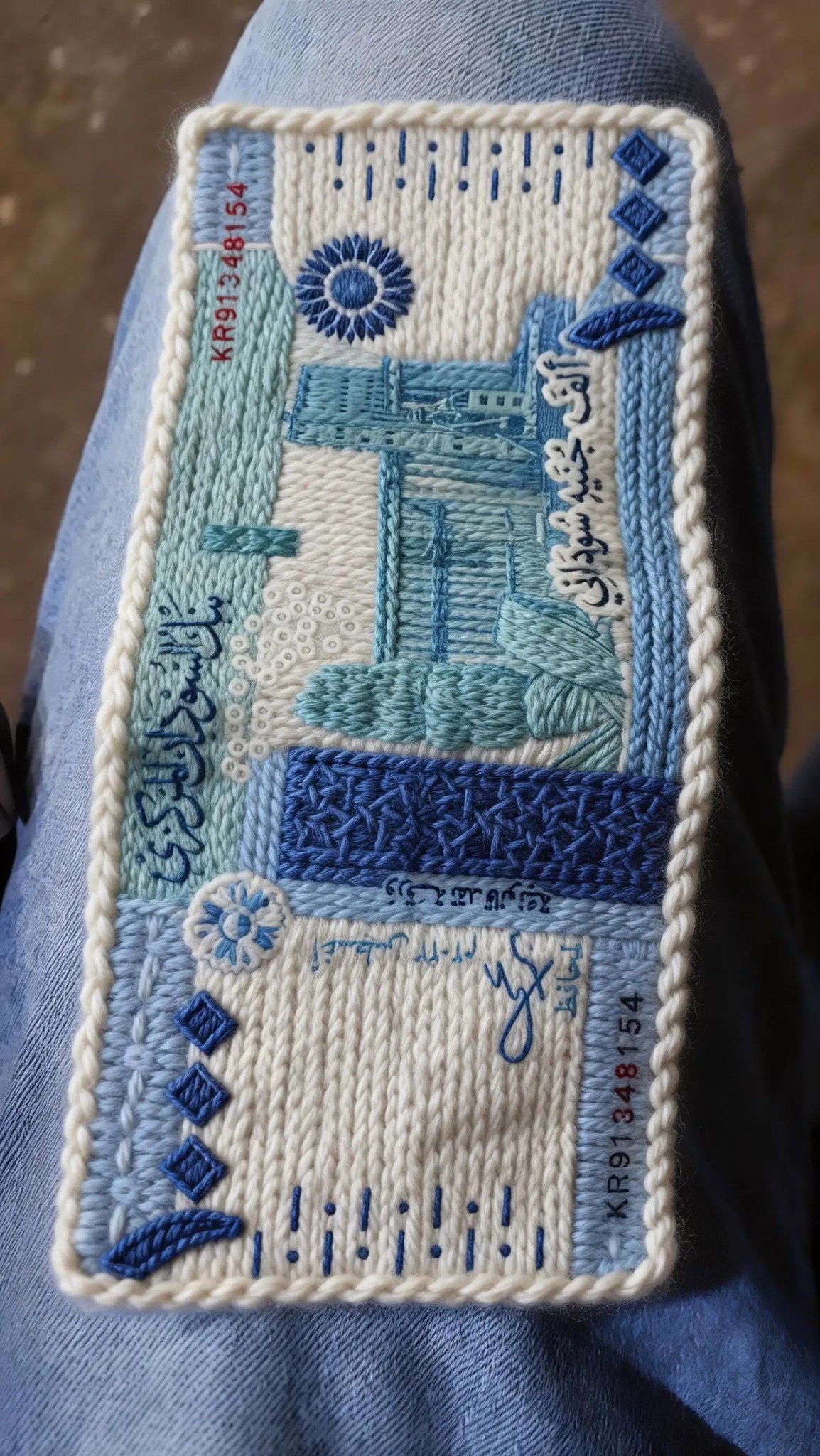 شاهد بالصورة.. خياط سوداني يطرز العملة فئة (1000 جنيه) بالخيط بطريقة هندسية مدهشة والجمهور يطالب بنك السودان بتكريمه