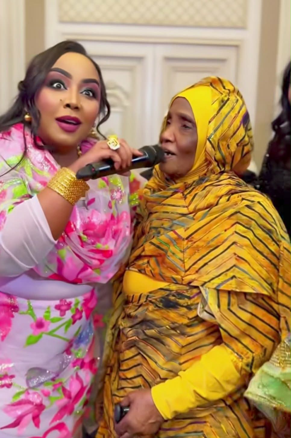وبحسب ما شاهد محرر موقع النيلين, فإن سلطانة الطرب استقبلت, والدة أسطورة الغناء السوداني, الراحل محمود عبد العزيز, بحفاوة كبيرة لحظة ظهورها معها بالمسرح.