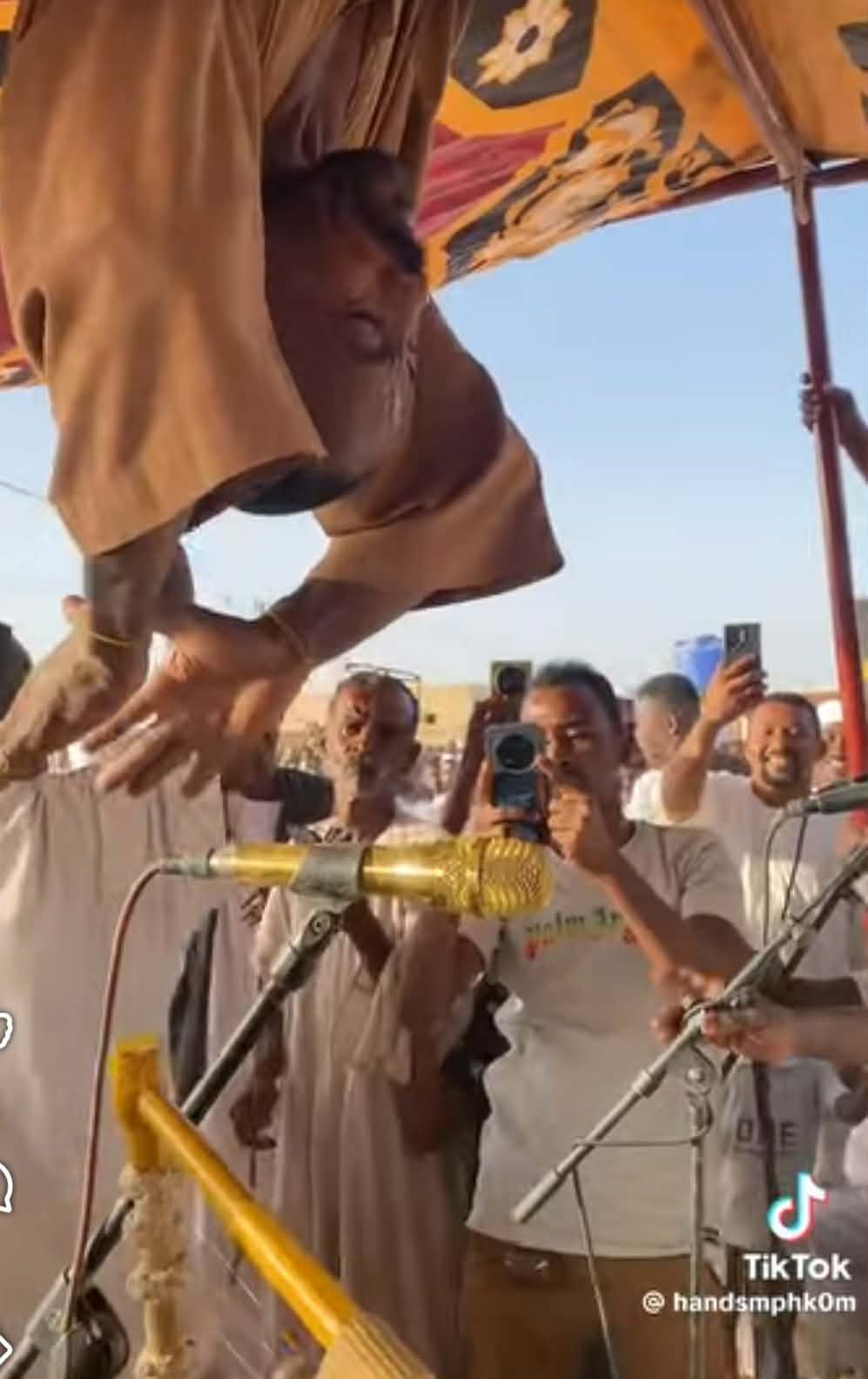 الرجل الذي عرف عنه حبه وعشق لأغنيات الطمبور فاجأ مطرب الحفل عبد المنعم فارس, والحاضرين بتصرفه الذي أثار سخرية جمهور مواقع التواصل الاجتماعي.