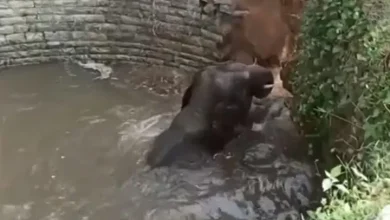 شاهد بالفيديو : لحظة إنقاذ فيل من داخل بئر