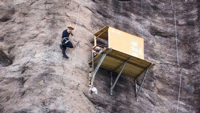 أغرب متجر في العالم.. معلق بارتفاع 120 متراً ولا يصله إلا المتسلّقون