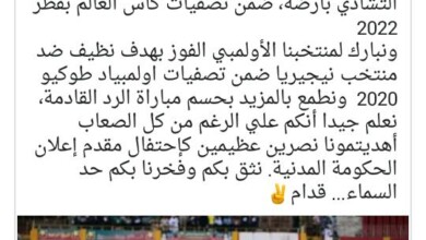 هنأت وزيرة الشباب والرياضة ولاء عصام البوشي المنتخبين الوطني الأول والمنتخب الأولمبي بفوزهما ، واعتبرت البوشي التي تم إعلان اسمها…