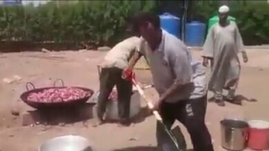 أثار فيديو يظهر فيه رجال في مناسبة زواج وهم يقومون بطبخ كميات كبيرة من اللحم على صاج ضخم – أثار…