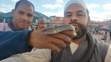 بالصورة : ثعبان ضخم يلتف حول عنق الداعية “محمد هاشم الحكيم” بساحة السَحَرة
