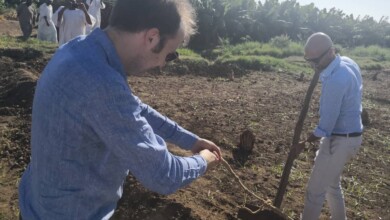 بالصور : في مشهد رائع السفير البريطاني يمسك “بالواسوق” في إحدى مزارع قرى السودان الوادعة