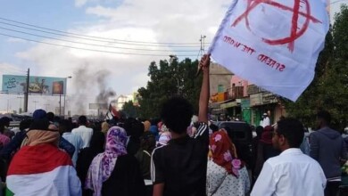 شاهد بالصورة. متظاهر بالخرطوم يرفع علماً غريباً “مثير للجدل” ومراقبون يفسرون مغزاه