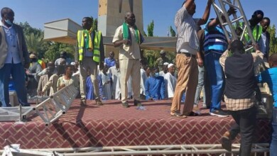 شرع متظاهرون ينتمون إلى مجموعة التوافق الوطني لقوى الحرية والتغيير، إلى نصب مسرح تمهيداً للاعتصام أمام القصر الجمهوري. واظهرت صورا…