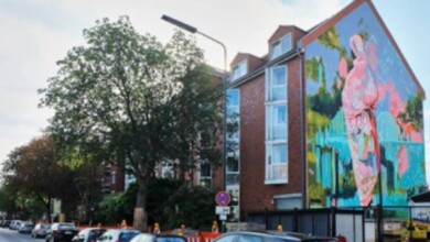 الفنانة التشكيلية الألمانية جوليا بنز قامت بتزيين الجدران الخارجية لمرسمها ومعرضها الدائم بمدينة هامبورغ الألمانية بجدارية عملاقة تتجسدها صورة…