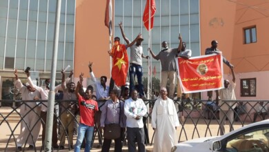 جماهير المريخ تنفذ وقفة احتجاجية وترفع علم النادى على سارية باتحاد الكرة