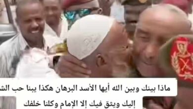 شاهد بالصورة والفيديو.. شيخ سوداني يجري نحو “البرهان” ويقبله وطالب يبكي فرحاً والجمهور: (ماذا بينك وبين الله أيها القائد حتى يحبك الشعب لهذه الدرجة)