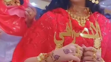 شاهد بالصورة والفيديو.. في ليلة زفافها.. عروس سودانية ترتدي أطقم من الذهب مكتوب عليها اسم الناشط الشهير (الإنصرافي)