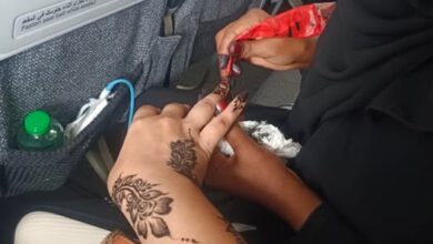 شاهد بالصورة.. عروس سودانية تحكي قصة عن طيبة السودانيين: (كنت مضطرة أسافر يوم زواجي وكنت مكتئبة وبطني طامة..قابلت سيدة في الطائرة أخرجت “كيس” الحنة ورسمت لي حنة العرس ونحنا في الجو)