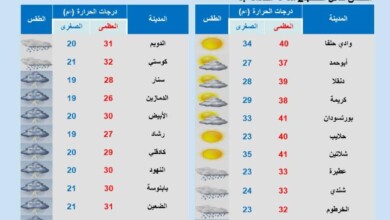 وفقاً للهيئة العامة للأرصاد الجوية اليكم حالة الطقس خلال ال “24” ساعة القادمة ، نشرة اليوم الاربعاء. الخرطوم ( كوش…