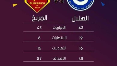تنحاز الأرقام للهلال قبل مواجهة نده المريخ، غد الأربعاء، في لقاء القمة المؤجل من النصف الأول لدوري النخبة، وذلك بالفوز…