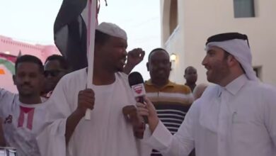 شاهد بالصورة والفيديو.. أحدهم توقع فوز المنتخب المصري بكأس العرب.. سودانيون بقطر يقيمون “زفة” على طريقة “الصوفية” قبل دخولهم ملعب المباراة