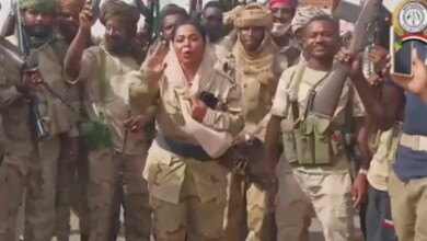 شاهد بالصورة والفيديو.. فتاة حسناء تظهر بالزي العسكري للدعم السريع وتقتحم إحدى إرتكازات “الدعامة” لتحمس الجنود على القتال بأبيات شعر وتؤكد: (الأشاوس ديل بجيبوا ليكم الديمقراطية)