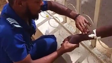 شاهد بالصورة والفيديو.. شرطي سوداني يحصد آلاف الاعجابات بعد انقاذه لمواطن مريض بمساعدته على تركيب “فراشة” طبية بطريقة بارعة يحسده عليها الممرضين