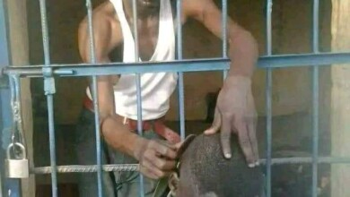 شاهد بالصورة.. السودان بلد العجائب.. من داخل حراسته سجين يقوم بحلاقة شعر الشرطي المسؤول عن مراقبته